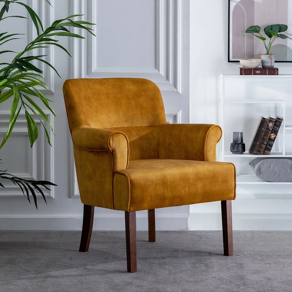 Adaugă rafinament și confort în orice încăpere cu fotoliul Refined galben ocru. Cu un design clasic și tapițerie din stofă de calitate superioară, acest fotoliu este ideal pentru living, dormitor sau birou.