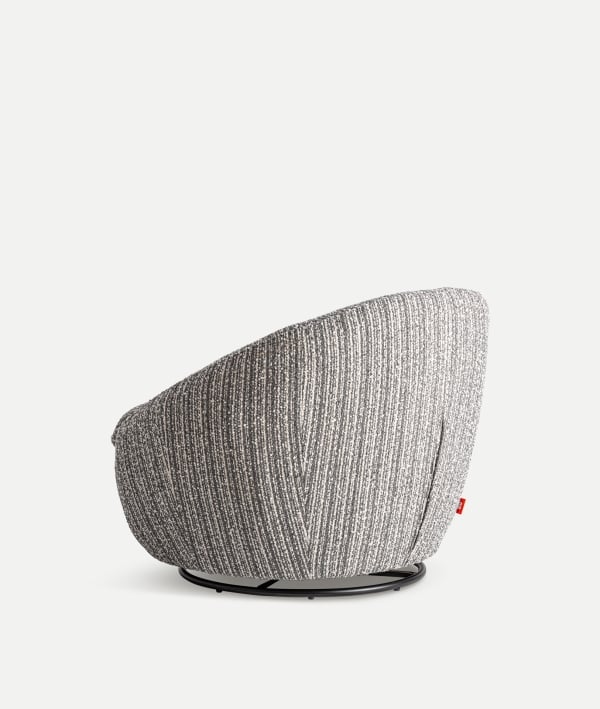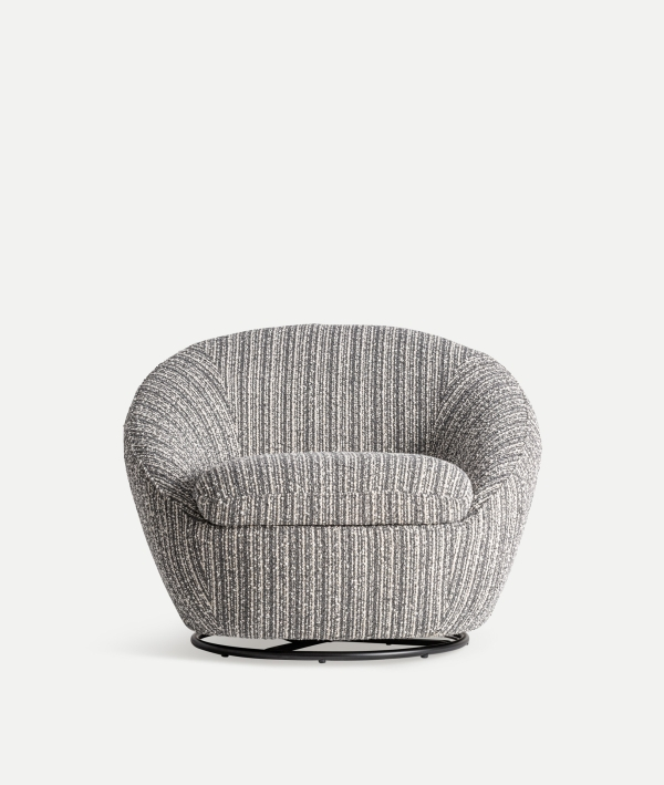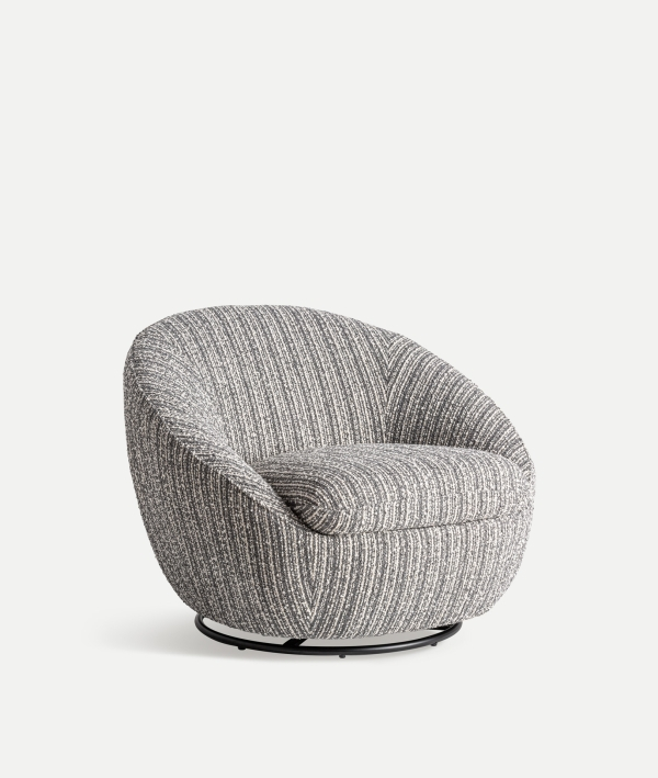 BUBU este un fotoliu rotativ elegant și confortabil, creat de KODU pentru a combina designul contemporan cu relaxarea absolută. Forma sa rotunjită și tapițeria moale în tonuri de gri cu efect marmorat oferă un aspect sofisticat și modern, ideal pentru zone de lounge, camere de hotel, birouri sau colțuri de relaxare.