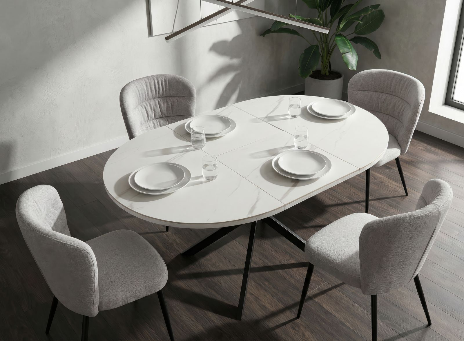 Forma rotundă creează o atmosferă caldă și prietenoasă în jurul mesei, încurajând conversațiile și momentele speciale petrecute alături de familie sau prieteni. Sistemul de extensie central permite transformarea rapidă a mesei, oferind mai mult spațiu atunci când ai invitați.