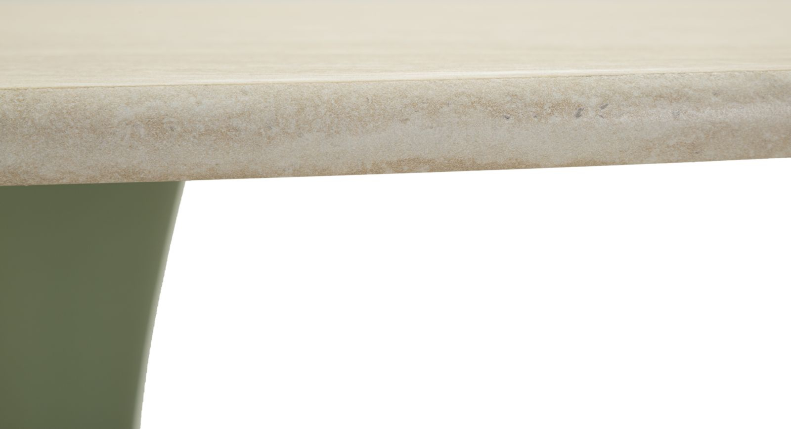 Sfatul designerului: asortează masa STOCCOLMA cu scaune în nuanțe naturale și o suspensie cu lumină caldă; piciorul verde devine accent cromatic discret, iar blatul deschis păstrează compoziția luminoasă.