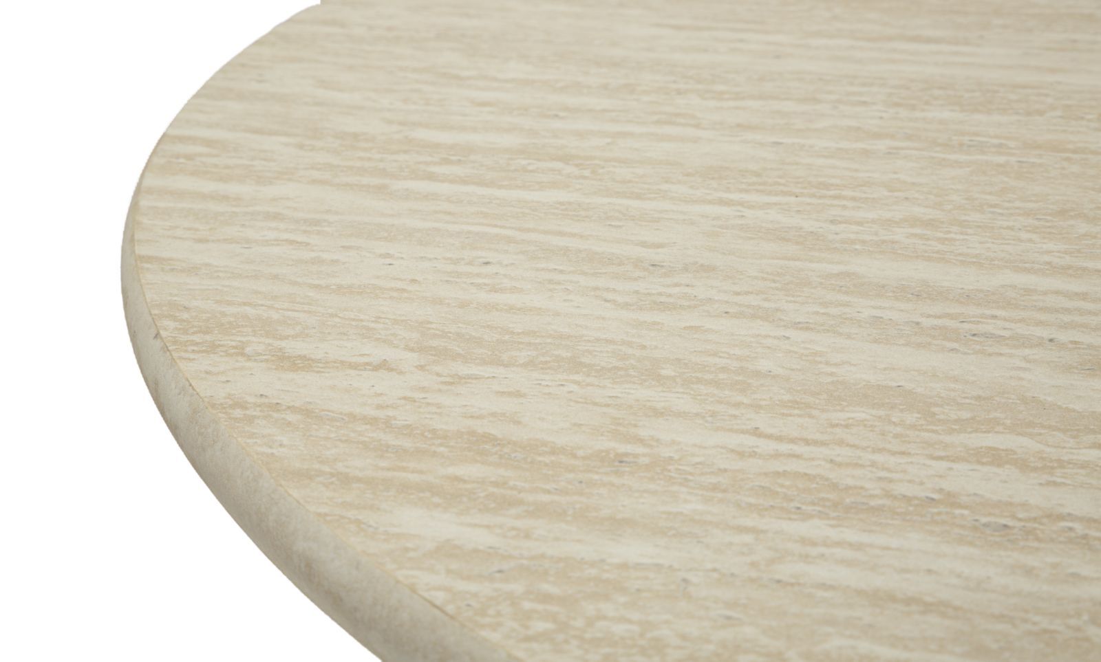 Silueta minimalistă avantajează zonele de dining moderne și scandinave, iar formatul de 120 cm se potrivește lejer pentru patru persoane, încurajând conversația în jurul mesei.