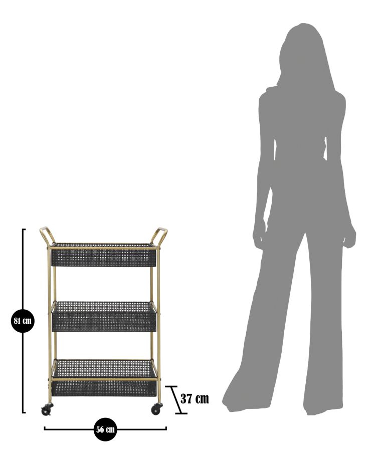 Fashion este o masă de servire elegantă și durabilă, fabricată din fier. Designul este italian, căruciorul acesta de servire fiind un Mauro Ferretti original, importat pt dvs. de CreativDeco. Cărucioarele de servire sunt piese de mobilier mobile, utilizate pentru a transporta alimente și băuturi într-un mod eficient și elegant. Acestea sunt echipate cu roți pentru a facilita deplasarea și pot avea mai multe rafturi sau compartimente pentru organizare. Fashion are trei rafturi ceea ce îl face perfect ca un cărucior elegant pentru bucătăriile mici unde vă va permite să depozitați cu stil obiecte și alimente de care aveți nevoie în mod curent. Atunci când aveți oaspeți, Fashion devine un cărucior pentru bar care va facilita băuturilor în timpul întâlnirilor cu prietenii sau familia, sau un cărucior de catering durabil, extinzând suprafața de servire a aperitivelor și desertului. Fashion este un cărucior de servire potrivit și la birou sau în săli de conferință permițându-vă servirea cafelei, ceaiului și a gustărilor pe care le luați în pauză. Ai nevoie de mai multe idei creative? Sună designerul CreativDeco.