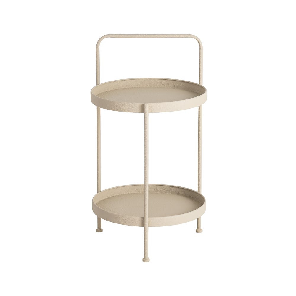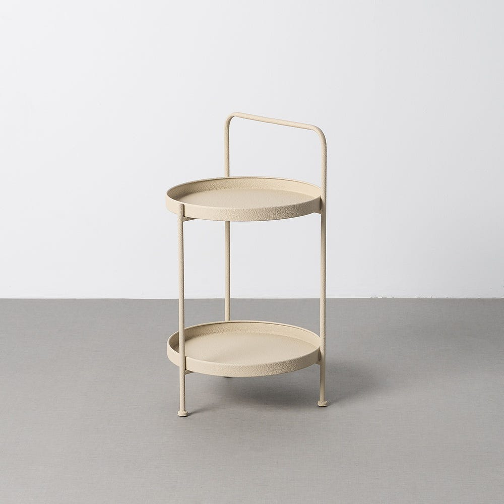 Sfatul designerului CreativDeco: Folosește această măsuță metalică bej lângă o canapea cu forme simple sau într-un colț de lectură, pentru a adăuga funcționalitate fără a încărca vizual spațiul.