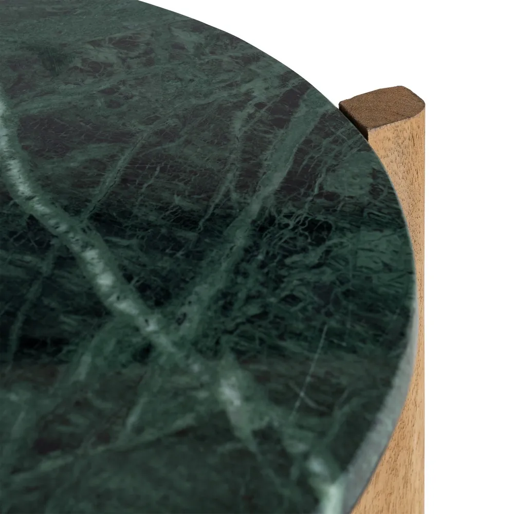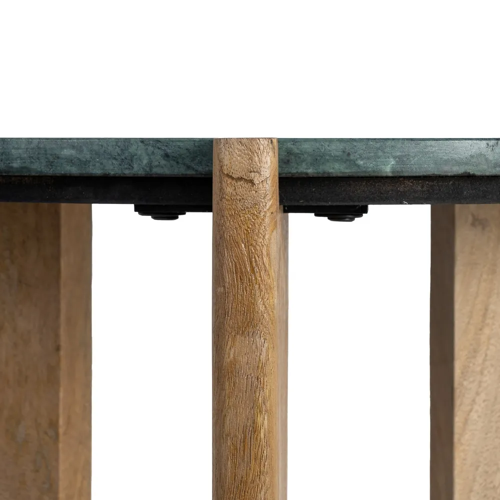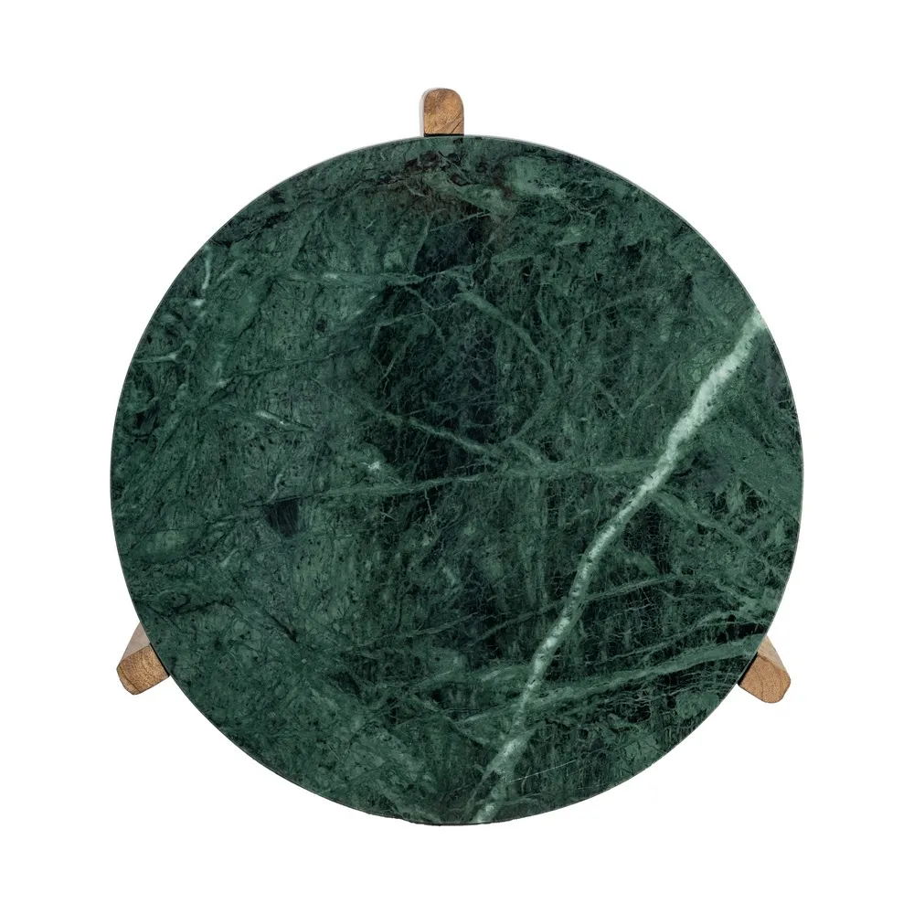 Adaugă un accent natural și sofisticat în orice colț al livingului sau dormitorului cu această măsuță laterală compactă, realizată din marmură verde cu venatură naturală și bază din lemn de mango. Blatul de marmură luminează vizual spațiul și aduce un efect organic și elegant, în timp ce lemnul de mango completează armonios textura rece a marmurei, oferind căldură și echilibru vizual.