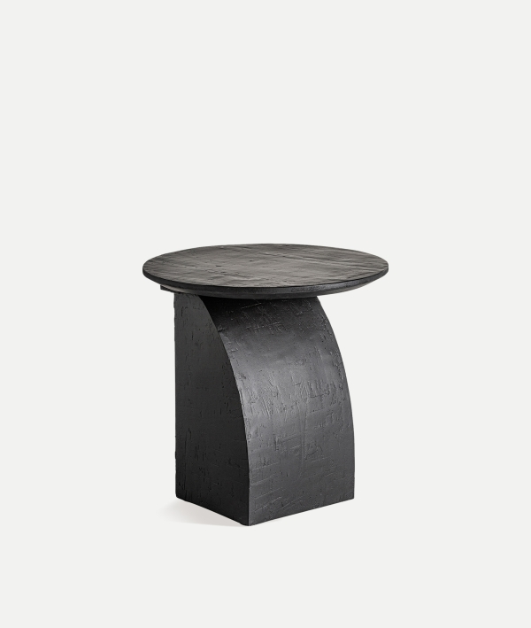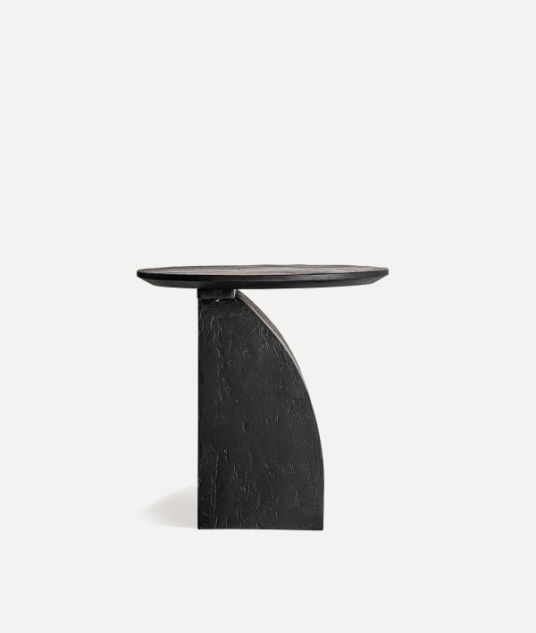 Măsuță laterală din lemn de mango și MDF negru – o piesă de mobilier contemporană ce combină designul sculptural cu funcționalitatea. Ideală pentru livinguri moderne, spații lounge sau colțuri de lectură rafinate.