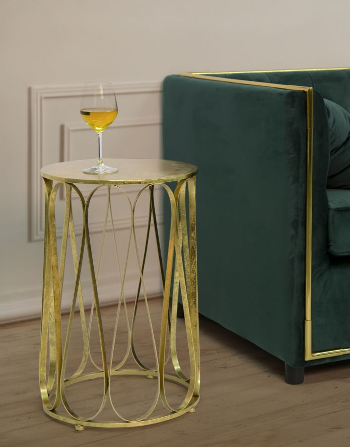 Masuta laterala din metal auriu cu design elegant in stilul glamour.