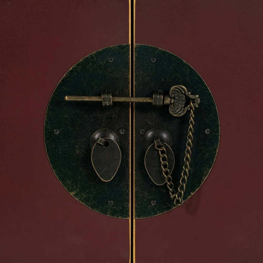 Această noptieră roșu închis burgundy cu design oriental este o piesă de mobilier versatilă și elegantă pentru dormitorul dumneavoastră. Cu un sertar, un raft și un compartiment de depozitare cu două uși, oferă multiple opțiuni pentru organizarea obiectelor personale. Culoarea distinctivă, cu subtonuri maronii și detalii aurii, creează un contrast sofisticat. Elementele de inspirație orientală, precum balamalele decorative și mânerele sertarelor, adaugă un farmec aparte. Închizătoarea unică din metal nu doar protejează ușile de uzură, ci și completează aspectul estetic. Ciucurele din mătase adaugă o notă de rafinament, desăvârșind aspectul oriental. Fabricată din MDF de calitate și importată de CreativDeco din Spania, această noptieră roșie este perfectă pentru cei care caută noptiere cu design oriental și o culoare îndrăzneață în dormitorul lor.