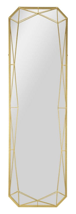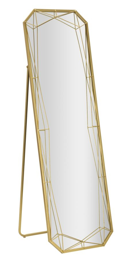 Această oglindă de podea cu structură geometrică și finisaj auriu aduce un accent rafinat și luminos în amenajările contemporane. Liniile subțiri din metal conturează elegant suprafața reflectorizantă, iar proporțiile înalte contribuie la definirea unui spațiu aerisit, potrivit pentru dormitor, dressing sau living cu personalitate.