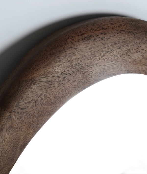 Realizată manual, fiecare oglindă este unică, reflectând autenticitatea materialului și meșteșugul atent. Prin combinația de lemn natural și oglindă clară, această piesă devine un simbol al eleganței organice și al minimalismului cald.