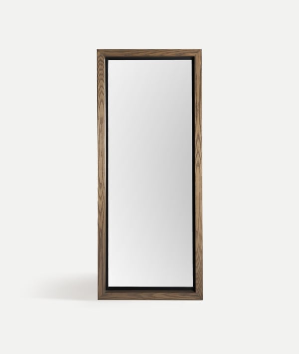 Oglinda BUSK impresionează prin designul său rafinat și minimalist, cu o ramă subțire din lemn de frasin maro care evidențiază textura naturală a lemnului. Este o piesă decorativă versatilă, ce adaugă luminozitate, profunzime și echilibru vizual oricărui spațiu interior.