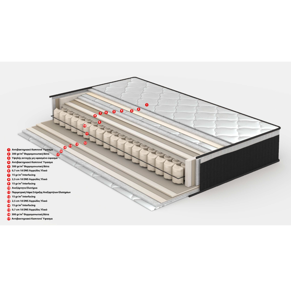 Arcurile pocket funcționează independent, reducând transferul mișcărilor între parteneri, iar cele 5 zone special proiectate susțin corect zona lombară, umerii, spatele și picioarele. Stratul de spumă oferă o senzație de îmbrățișare moale, menținând în același timp poziția naturală a coloanei vertebrale.
