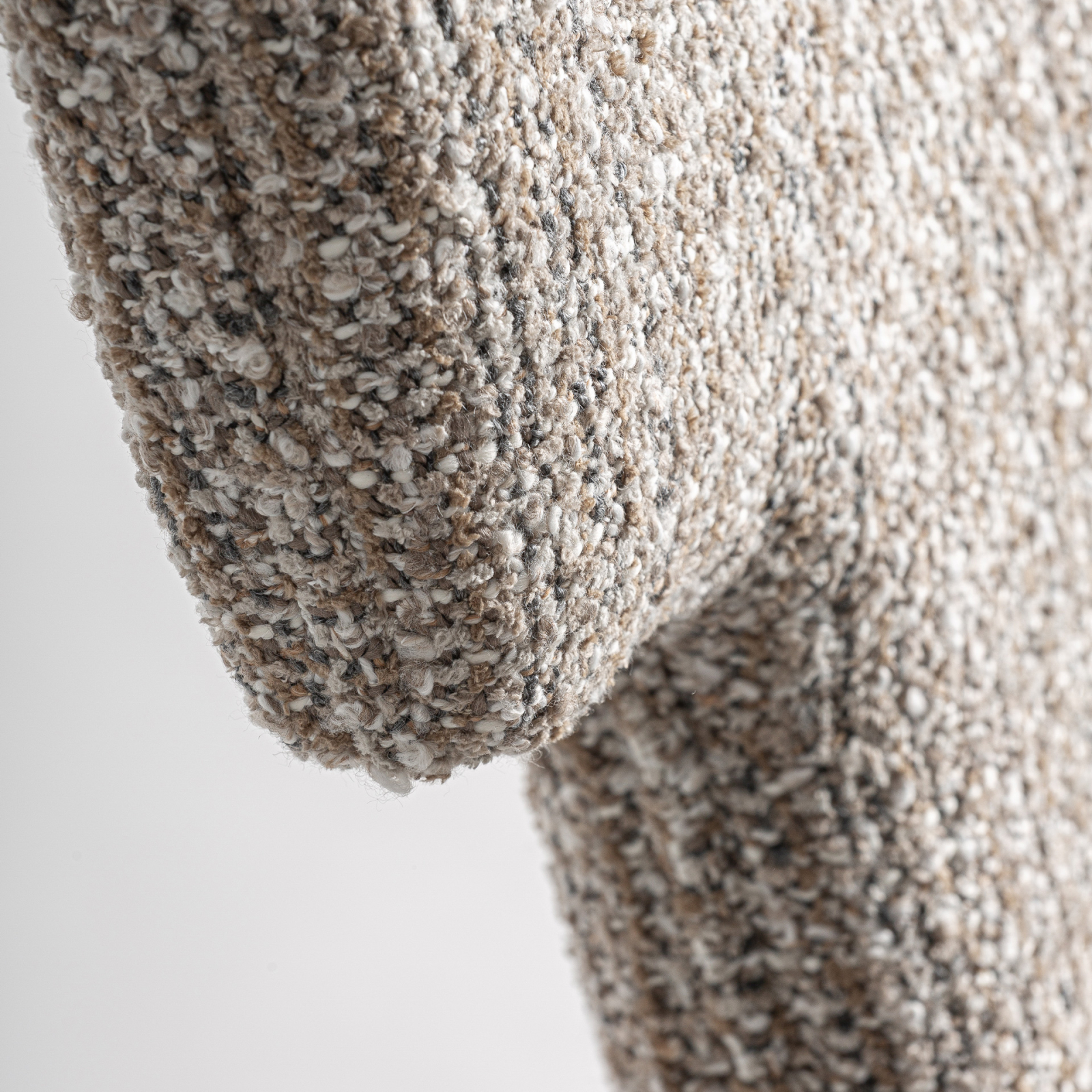 Acest scaun rotativ impresionează prin designul său învăluitor și prin estetica echilibrată, ideală pentru interioare care pun accent pe căldură și armonie vizuală. Tapițat în stofă cu finisaj chenille în tonuri neutre, aduce textură și profunzime în zone de dining, lounge sau în proiecte HoReCa unde confortul și imaginea premium trebuie să coexiste natural.