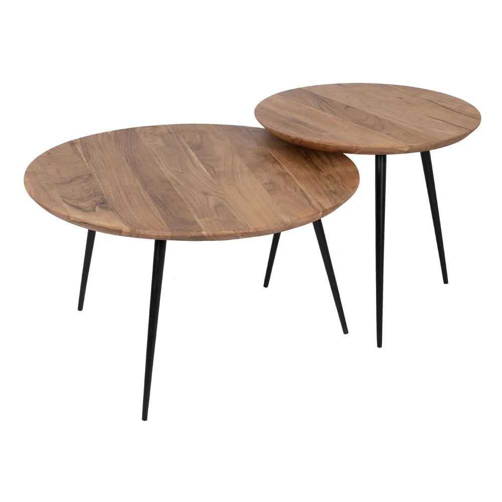 Transformă-ți livingul sau sufrageria cu acest set de 2 măsuțe care îmbină frumusețea lemnului natural de acacia cu eleganța metalului negru. Cu un design modern și minimalist, aceste măsuțe sunt perfecte pentru a aduce un plus de stil și funcționalitate oricărui spațiu interior. Blaturile rotunde adaugă un plus de armonie și fluiditate designului. Setul include două măsuțe de dimensiuni diferite, care pot fi folosite împreună sau separat pentru flexibilitate maximă. Pot fi folosite ca măsuțe de cafea, mese laterale, sau măsuțe de capăt, adaptându-se ușor nevoilor tale. Materialele de calitate asigură o utilizare îndelungată și rezistență la uzură.