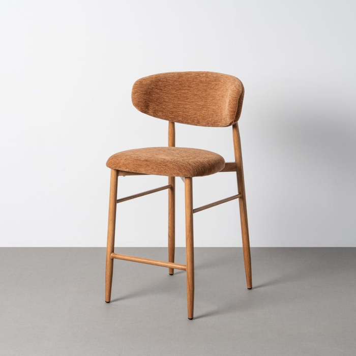 Acest set de scaune de bar aduce în spațiu o atmosferă caldă și relaxată, prin nuanța portocalie a stofei și liniile simple care inspiră confort. Este genul de piesă care face zona de bar sau insulă de bucătărie să pară mai primitoare și mai ușor de folosit zi de zi.