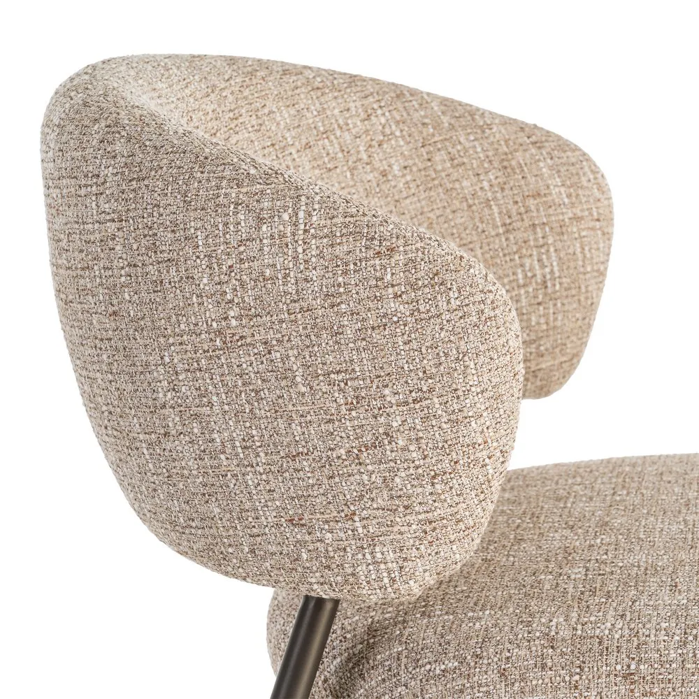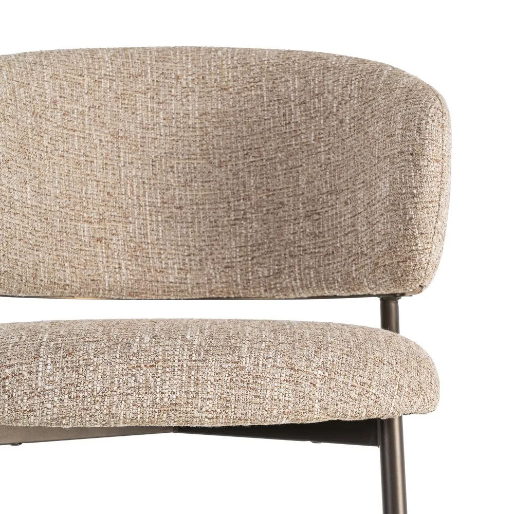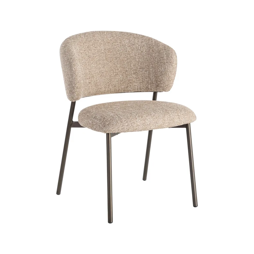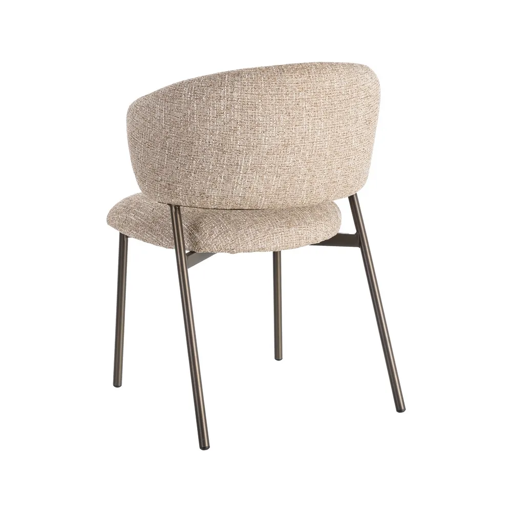 Structura metalică robustă asigură stabilitate și durabilitate, completând silueta elegantă și simplă a scaunelor. Tonul neutru bej-maro se integrează ușor în interioare moderne, scandinave sau contemporane, aducând versatilitate și rafinament în orice spațiu.