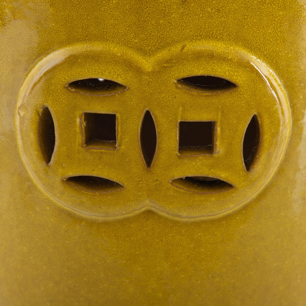 Taburet galben din ceramica cu rol decorativ si utilitar, perfect pentru orice spatiu