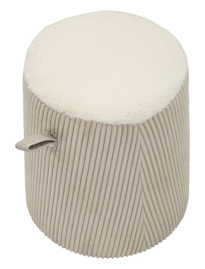 Nuanța albă luminoasă amplifică senzația de spațiu și se integrează ușor în amenajări contemporane, scandinave sau minimaliste. Forma compactă îl face extrem de versatil, putând fi utilizat ca loc suplimentar de ședere, suport pentru picioare sau element decorativ într-un living sau dormitor.
