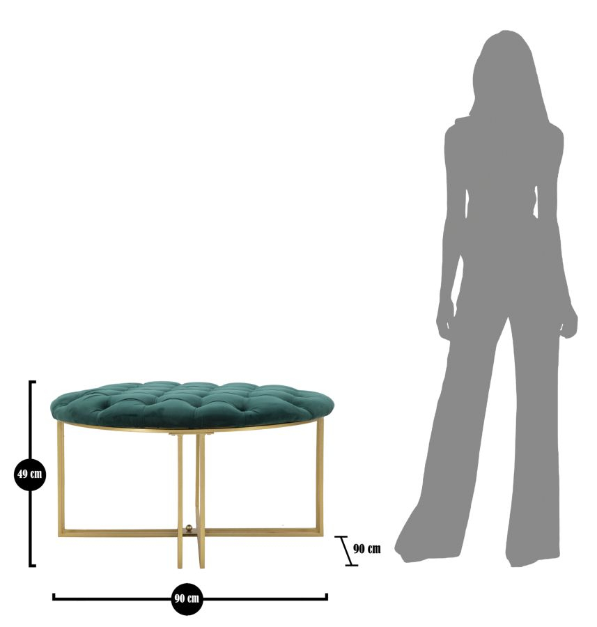 Mauro Ferretti Taburet XXL Catifea Verde cu baza aurie, 90 x 49 cm