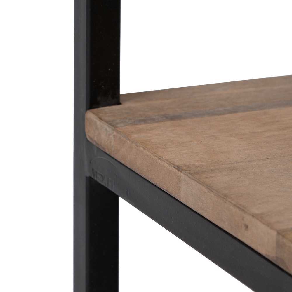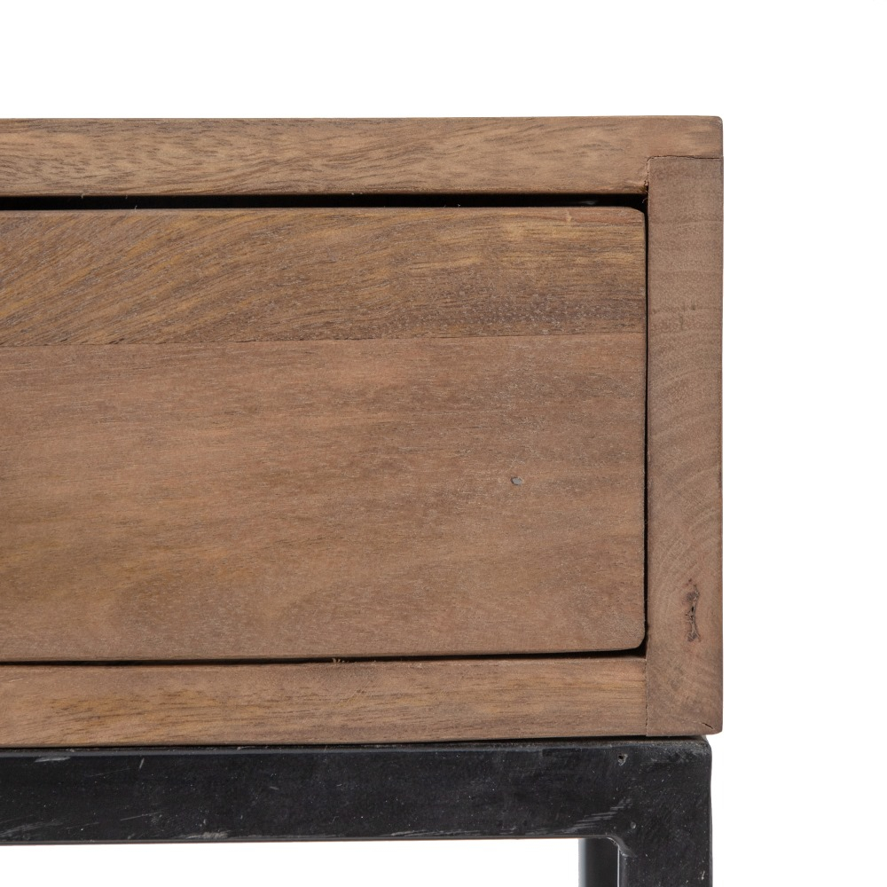 Noptieră compactă din lemn de mango și fier, cu un design modern și industrial. Sertarul mic este ideal pentru obiectele esențiale, iar spațiul inferior oferă loc suplimentar pentru accesorii. Designul aerisit și stabilitatea picioarelor o fac potrivită pentru interioare moderne și rustice.