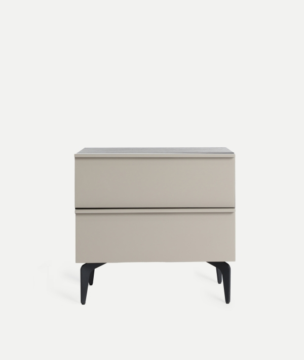 Cele două sertare spațioase sunt gândite pentru organizare eficientă, fiind ideale pentru depozitarea obiectelor esențiale din zona de noapte. Picioarele metalice conturate fin oferă stabilitate și un aer ușor sofisticat, integrând piesa cu naturalețe în interioare minimaliste sau scandinave.