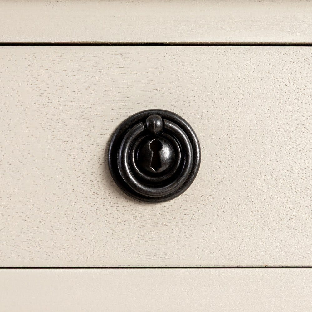 Stilul clasic contemporan se reflectă în liniile curate, în sertarul cu buton metalic rotund și în nuanța neutră de gri deschis. Această noptieră oferă spațiu util pentru depozitarea obiectelor mici, iar polița inferioară este perfectă pentru cărți sau decorațiuni.