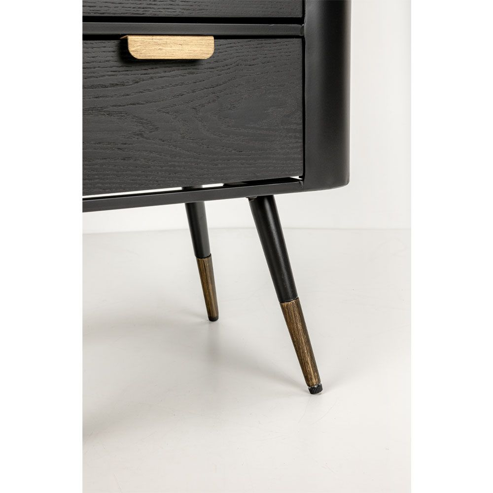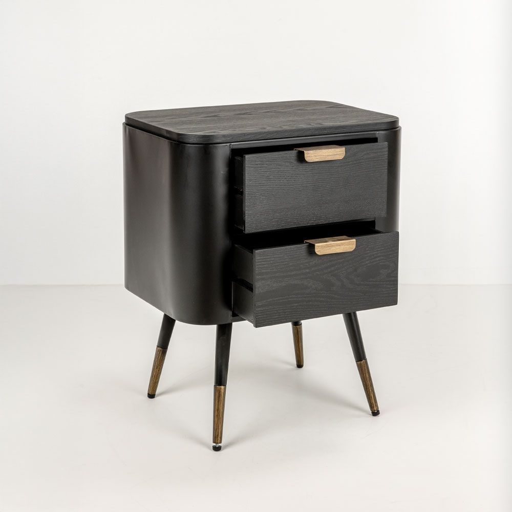 Dispune de două sertare spațioase care oferă practicitate pentru organizarea obiectelor esențiale, în timp ce picioarele din metal negru cu detalii aurii adaugă o strălucire subtilă și stabilitate. O piesă unică pentru cei care caută atât stil modern, cât și sofisticare, perfectă pentru a îmbunătăți estetic orice spațiu, oferind în același timp funcționalitate.