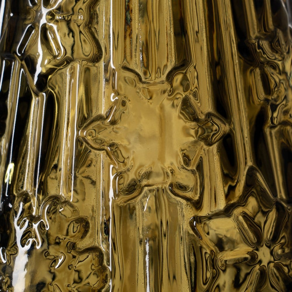O piesă decorativă statement, cu reflexii elegante și relief bogat, ideală pentru decoruri festive moderne, pe masă, comodă, consolă sau în vitrine.