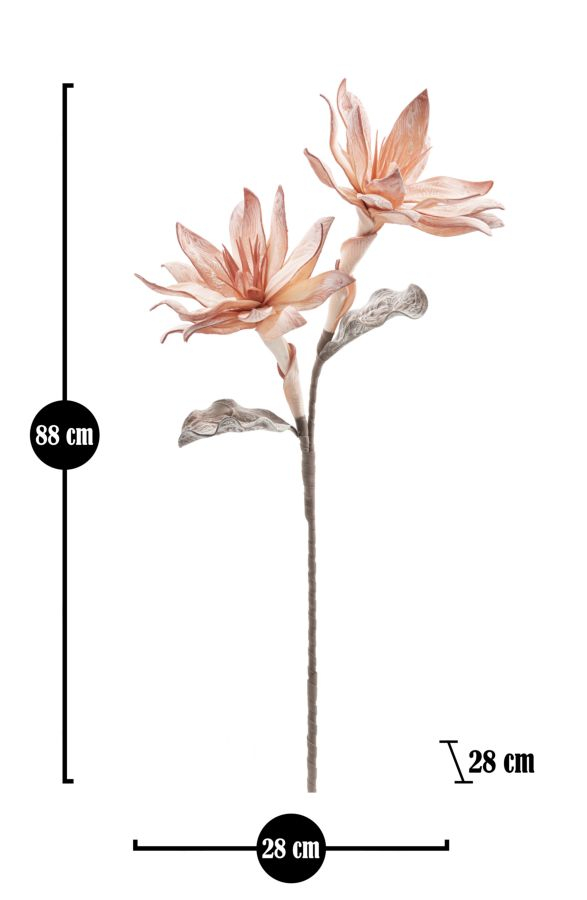 Această crengută cu două flori artificiale Glsang portocalii, măsurând 28x88 cm, este o piesă de decor vibrantă și plină de viață. Creată cu măiestrie de renumitul designer italian Mauro Ferretti și importată exclusiv de CreativDeco, această crengută artificială aduce un accent cald și energic în orice spațiu. Culoarea portocalie intensă a florilor Glsang creează un punct focal atrăgător, făcând-o perfectă pentru decoruri moderne sau eclectice. Avantajele acestei crengute artificiale includ durabilitatea sa excepțională, lipsa necesității de întreținere și aspectul său mereu proaspăt. Poate fi folosită ca piesă centrală într-un aranjament floral mai mare sau ca element decorativ de sine stătător, aducând un plus de vitalitate și căldură în orice încăpere.
