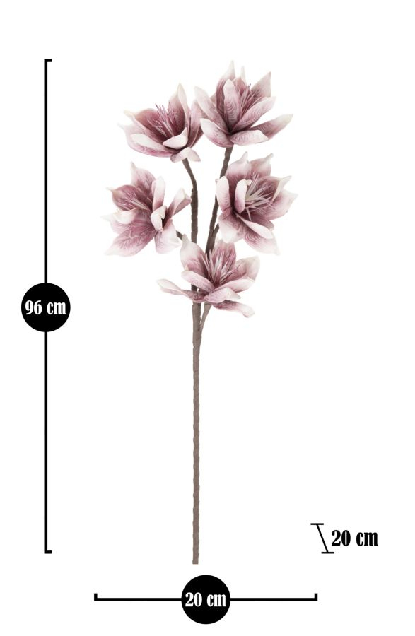 Crengile artificiale Wintersweet cu 5 flori mari în nuanță de roz sunt o alegere romantică și plină de feminitate pentru orice spațiu. Cu dimensiunile de 20x96 cm, aceste crengute artificiale de cea mai bună calitate, importate de CreativDeco din Italia de la designerul Mauro Ferretti, sunt ideale pentru a crea aranjamente florale delicate și pline de farmec. Florile artificiale au avantajul de a fi durabile și rezistente în timp, păstrându-și aspectul natural fără a necesita îngrijire specială. Nuanța de roz a florilor Wintersweet aduce o notă de gingășie și romantism, putând fi combinate cu alte flori și plante artificiale pentru a crea compoziții florale pline de grație și eleganță.