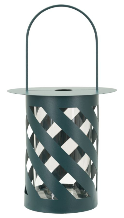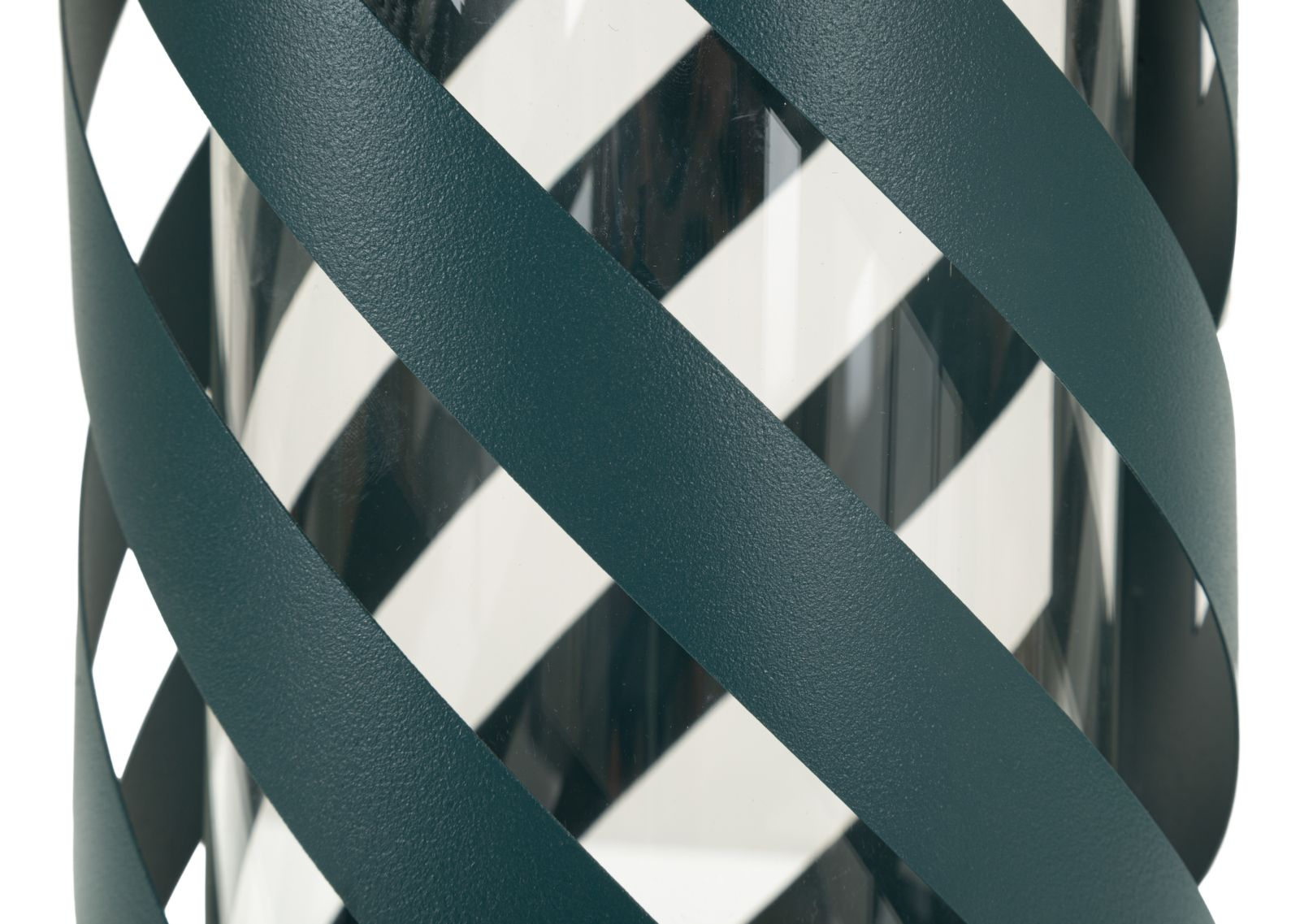Felinarul decorativ Twist Saturn impresionează prin designul său modern cu structură metalică perforată în model diagonal, ce creează un efect vizual dinamic și contemporan. Finisajul mat în nuanță verde petrol adaugă profunzime, iar forma cilindrică echilibrată îl transformă într-un accent decorativ potrivit pentru amenajări elegante.