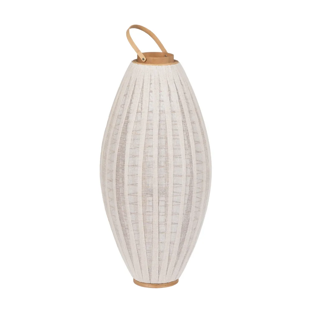Acest felinar inalt din bambus si in, cu dimensiuni impresionante de 41x41x80 cm, este o piesa de decor statement ce aduce un element natural si exotic in orice spatiu. Realizat din bambus si tesatura de in, acest felinar eco-friendly reflecta frumusetea materialelor naturale si mestesugul traditional din Orientul Indepartat. Potrivit pentru lumanari pastila, cilindrice sau LED-uri, acest felinar inalt creeaza o atmosfera magica si primitoare. Cu suportul intern pentru lumanari inclus, acest felinar decorativ devine un punct focal dramatic, perfect pentru a adauga inaltime si textura in colturi de camera sau langa mobilier inalt. Felinarele din bambus sunt apreciate pentru aspectul lor organic si versatil, fiind ideale atat pentru interior cat si pentru exterior.