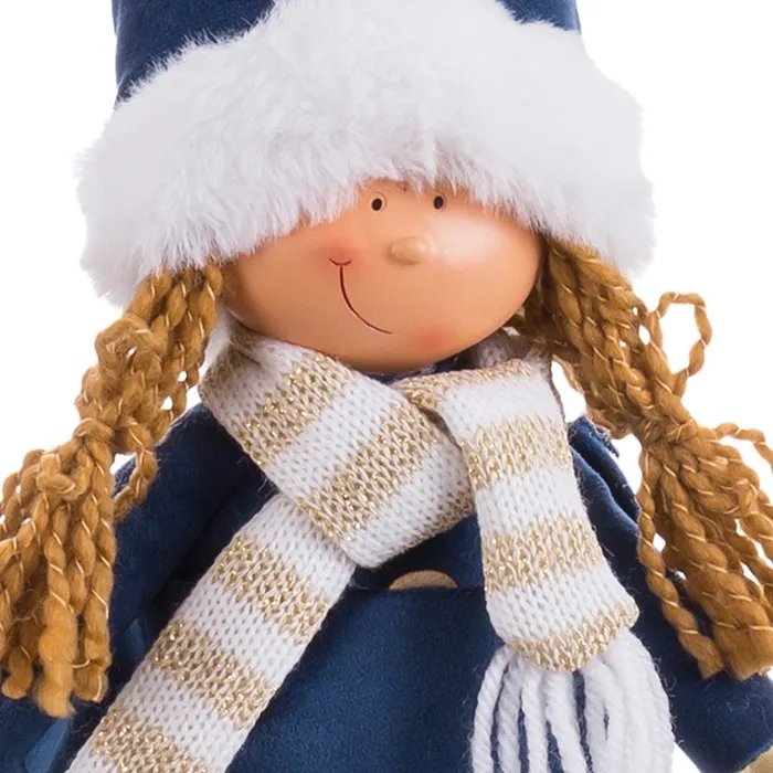 Această fetiță șezând din poliester albastru, cu dimensiunile de 15 X 10 X 62 CM, este ideală pentru a adăuga un element festiv și fermecător decorului tău de Crăciun. Cu o căciuliță albastră decorată cu o inimioară și o rochiță în carouri, această figurină este perfectă pentru a fi așezată pe marginea unei polițe, a unui raft sau a unei mese. Aduce un plus de veselie și originalitate în aranjamentele tale de sărbătoare. Descoperă această fetiță și alte decorațiuni de Crăciun la CreativDeco pentru a crea un decor magic și plin de bucurie în casa ta!