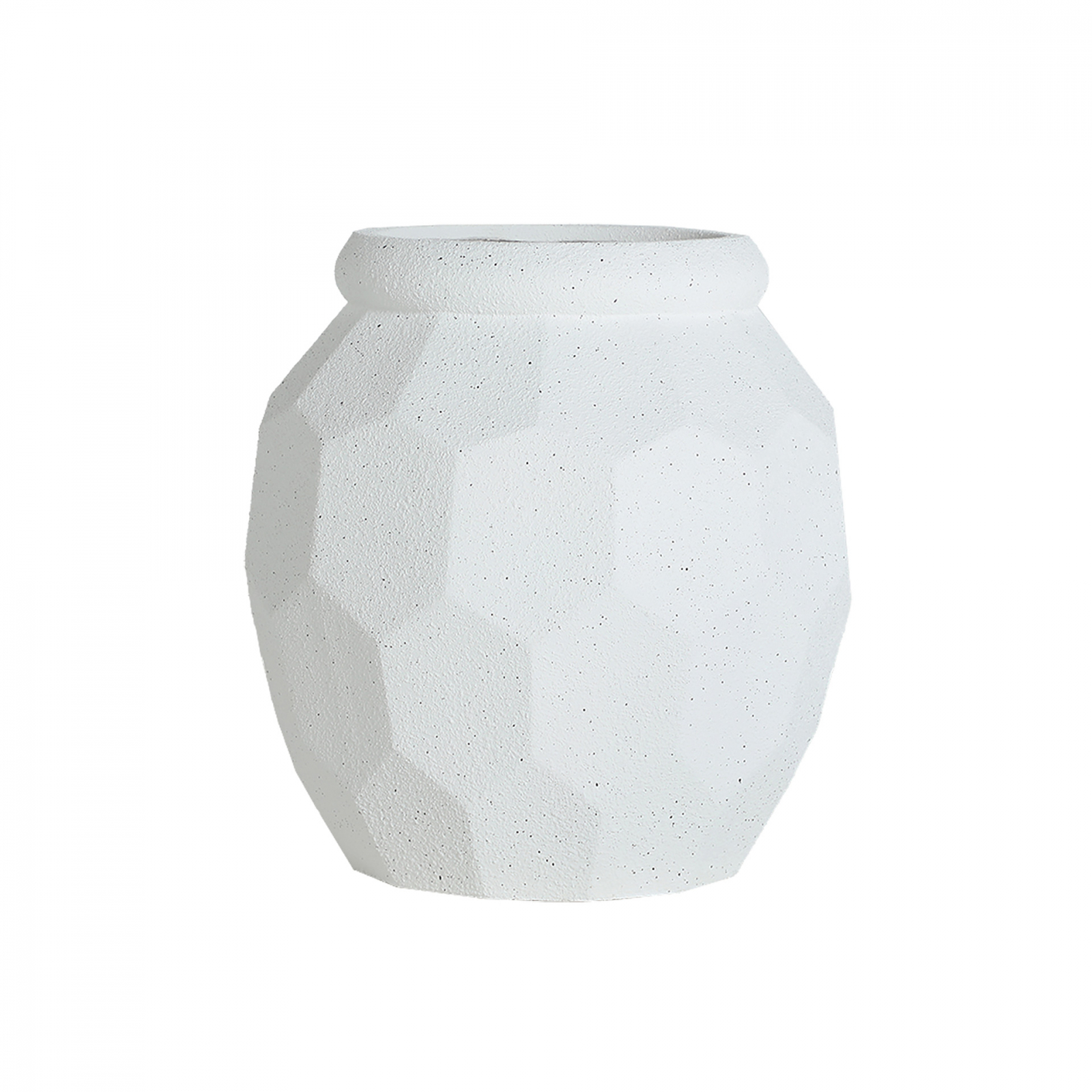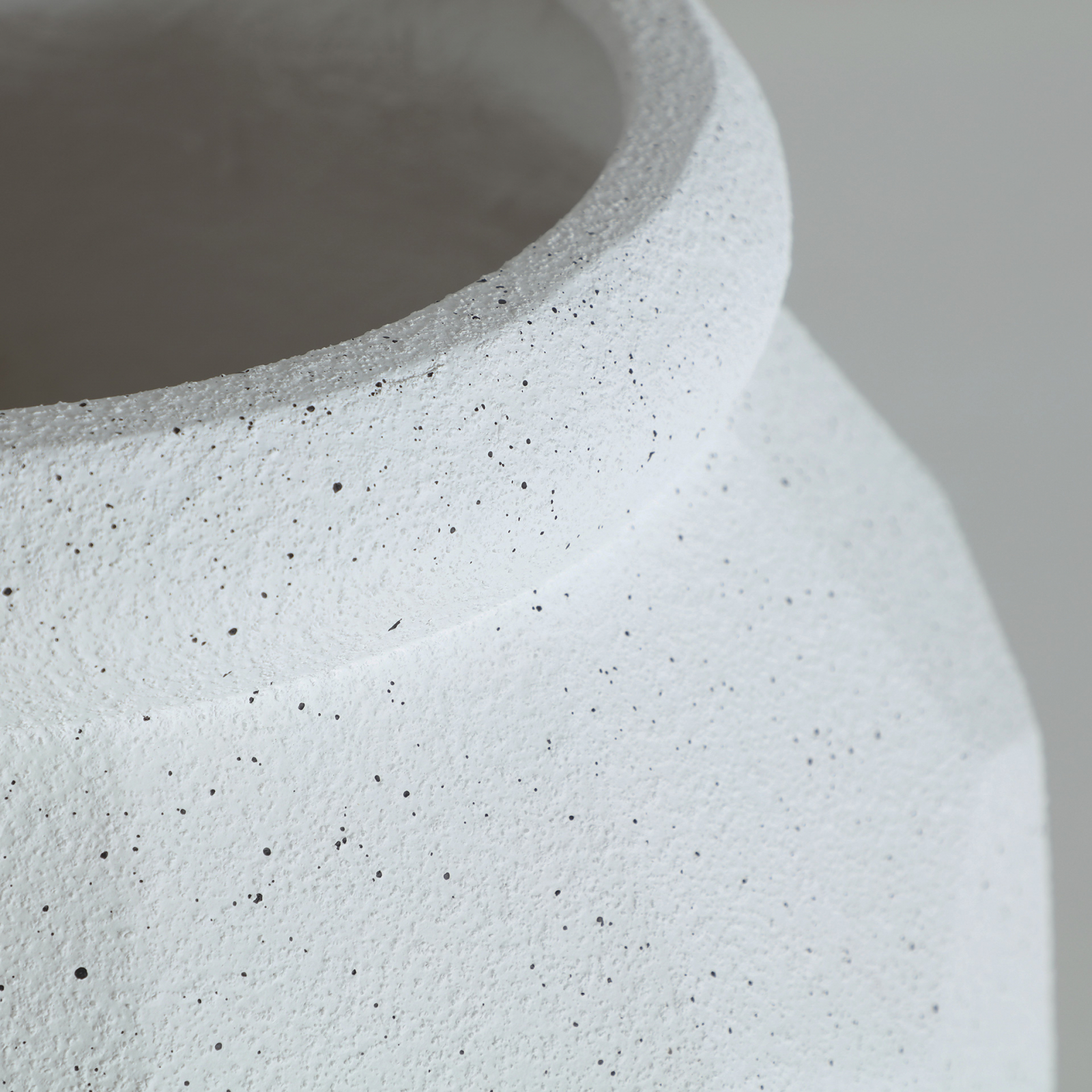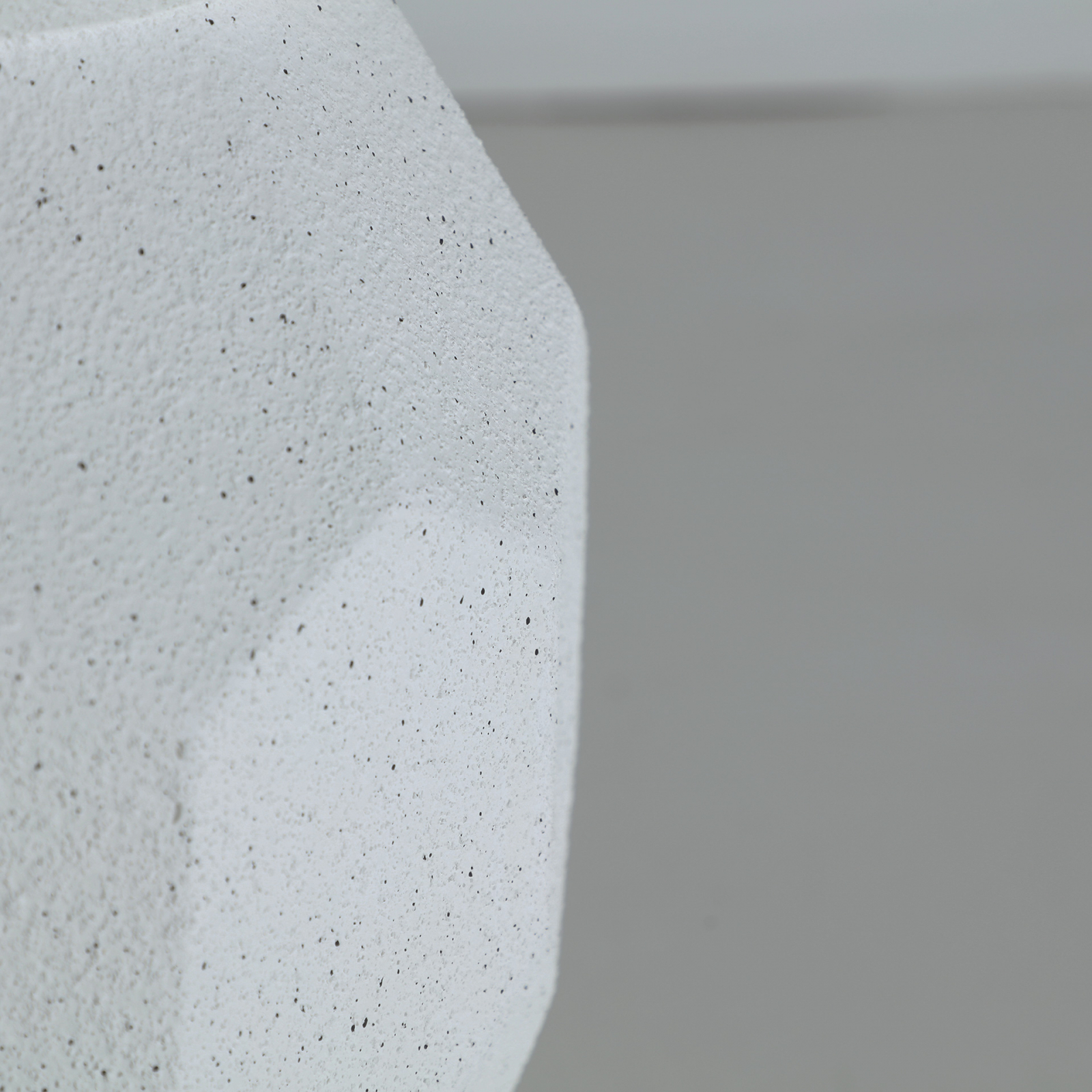 Cu o formă rotundă inspirată din tradiția ceramicii artizanale, ghiveciul Elmur reinterpretează clasicul într-o notă modernă, păstrând un aer natural și discret. Textura sa geometrică, de tip facetat, și finisajul alb cu ușoare accente roz creează un joc subtil de lumini și umbre.