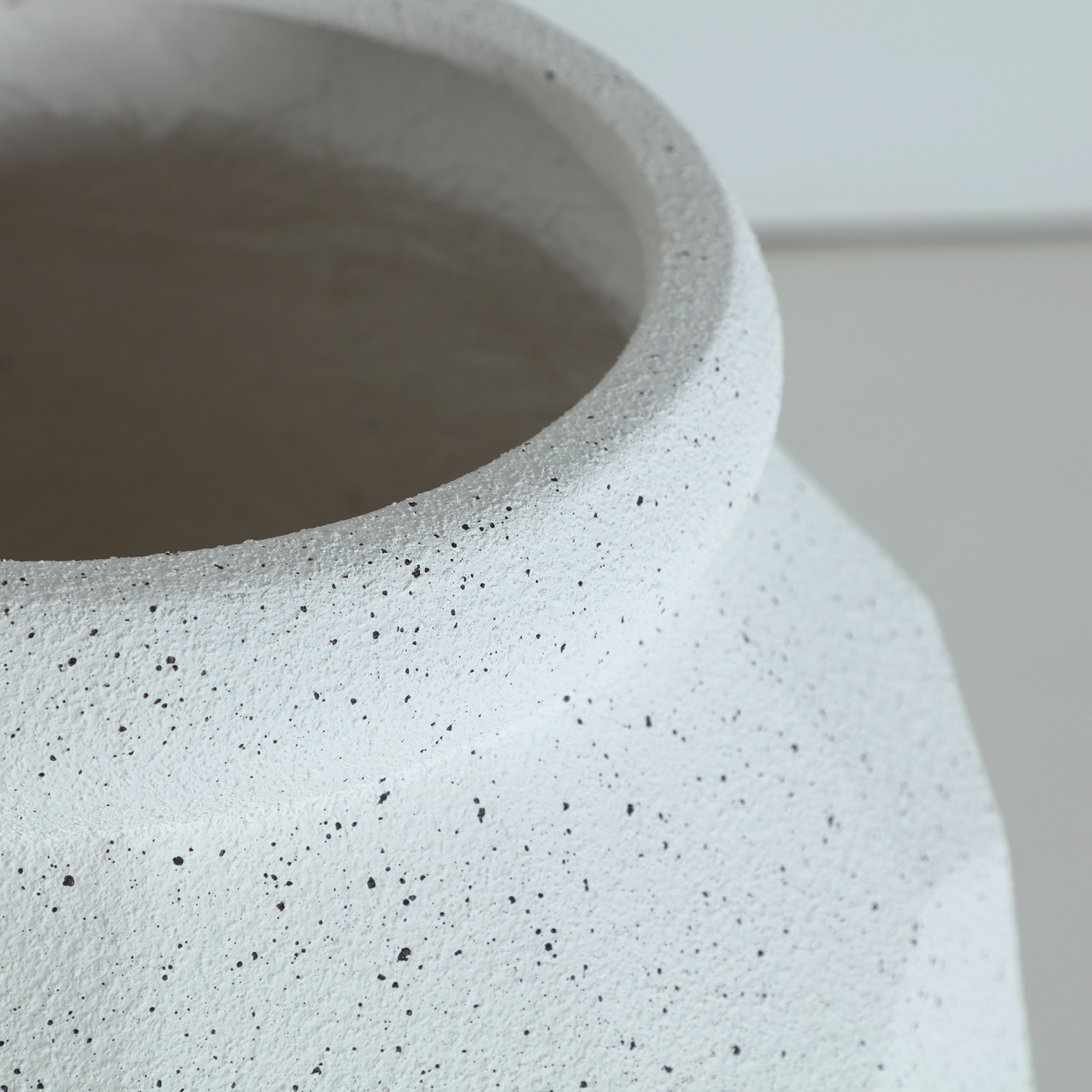 Cu forme rotunjite și volum delicat, ghiveciul Elmur aduce o prezență subtilă și sculpturală în orice încăpere. Modelul geometric fațetat, finisajul mat alb și contururile moi transformă această piesă într-un element decorativ contemporan, ideal pentru interioare calme și armonioase.