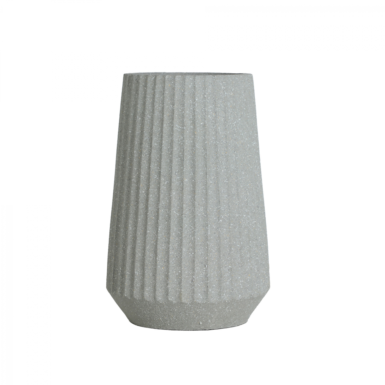 Cu o textură fină și un contur clar, ghiveciul Sanden oferă o prezență decorativă sobră și elegantă. Realizat din polirășină de culoare gri, acest obiect aduce un echilibru estetic natural în orice încăpere, completând armonios amenajările moderne sau japandi.