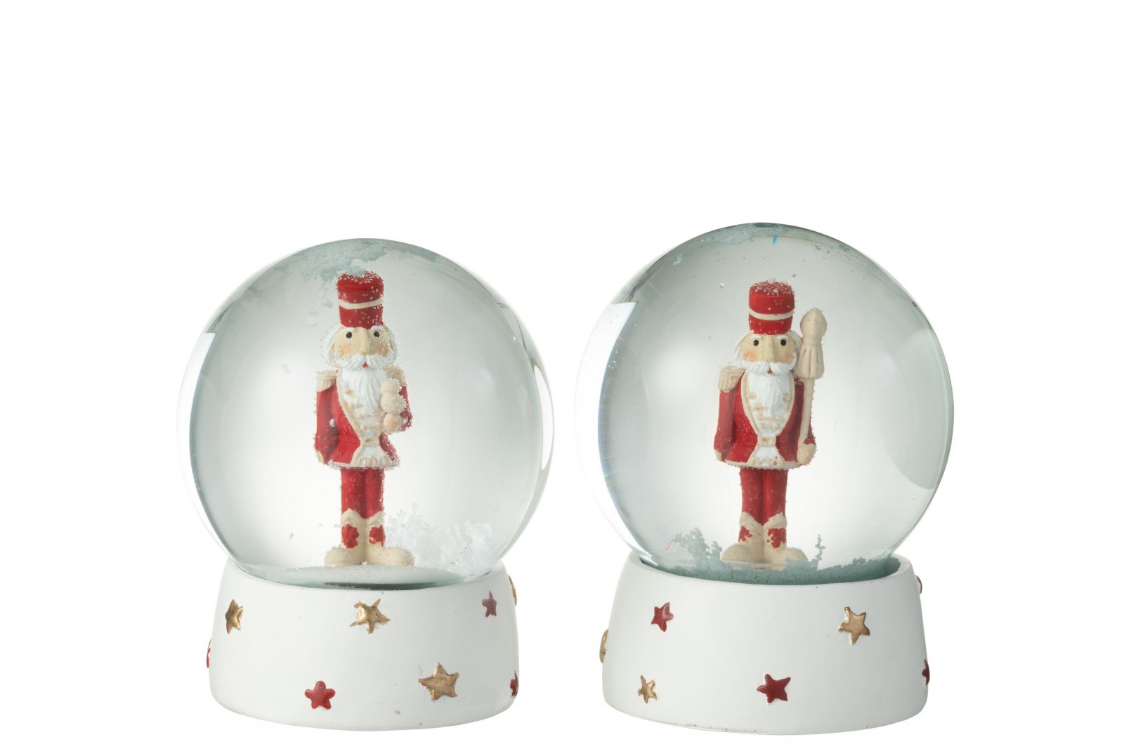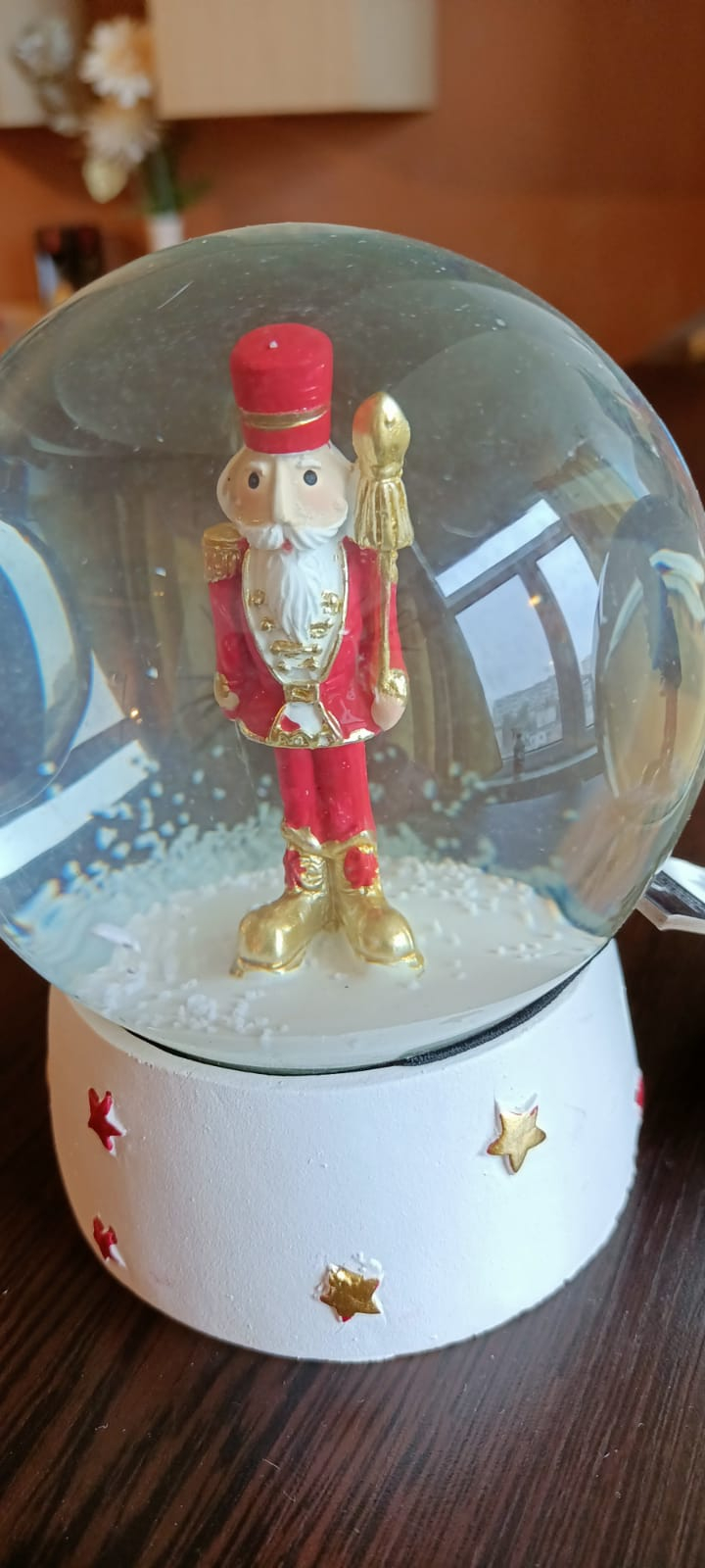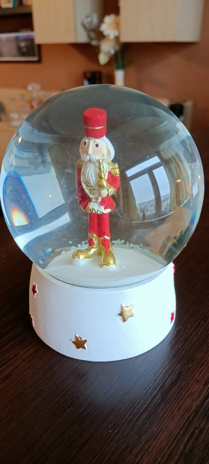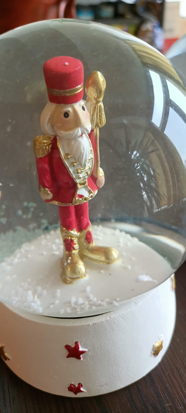 Obiecte decorative de Craciun realizate manual din rasina. Globul cu apa este un obiect cu o magie aparte. Această decoratiune captivanta cu dimensiuni de 11.5 cm înălțime și 9.5 cm lățime, este perfectă pentru a adăuga un accent festiv pe masa de Crăciun sau pe rafturi. Culorile alb și roșu oferă un aspect vesel și elegant, făcând din acest glob un cadou ideal pentru iubitorii de decoratiuni de sărbătoare.