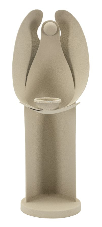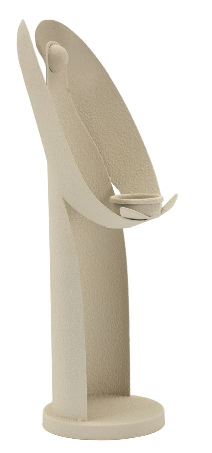 Acest set de două suporturi pentru lumânări sub formă de îngeri aduce în casă liniște, protecție și un aer solemn. Realizate din metal rezistent, cu finisaj bej mat, piesele sunt ideale pentru a crea o atmosferă caldă și spirituală în living, dormitor sau spații de meditație.
