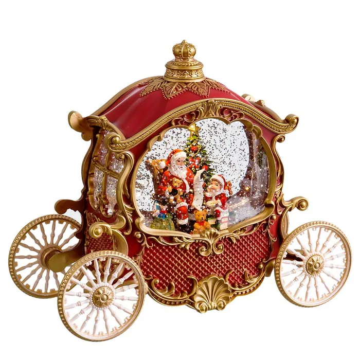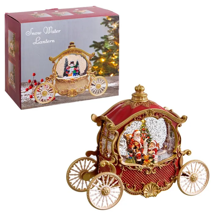Îmbogățește-ți decorul festiv cu această lanternă elegantă în formă de caleașcă, ideală pentru sărbătorile de Crăciun. Cu dimensiunile de 26 X 11 X 20 CM, această piesă decorativă luxoasă aduce un aer de poveste în orice cameră. Detaliile aurii și finisajele elegante o transformă într-un decor premium, perfect pentru casele care pun accent pe design interior rafinat. Funcționează fie prin cablu USB (inclus), fie cu baterii (3 x AA, neincluse), și este dotată cu un LED cu lumină caldă. Un decor festiv deosebit pentru iubitorii de decorațiuni de Crăciun care adaugă eleganță oricărui spațiu interior. Decorațiuni festive unice doar la CreativDeco!