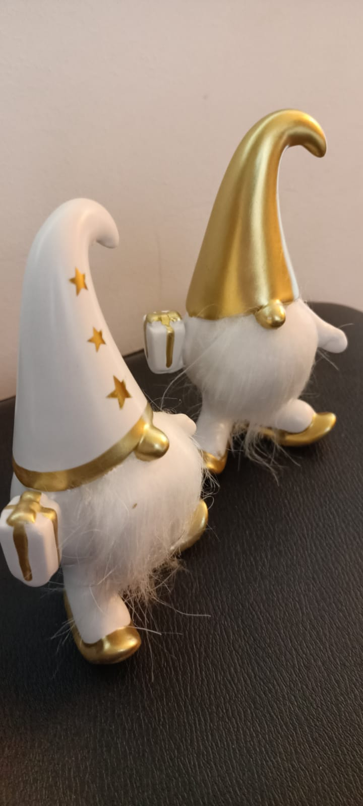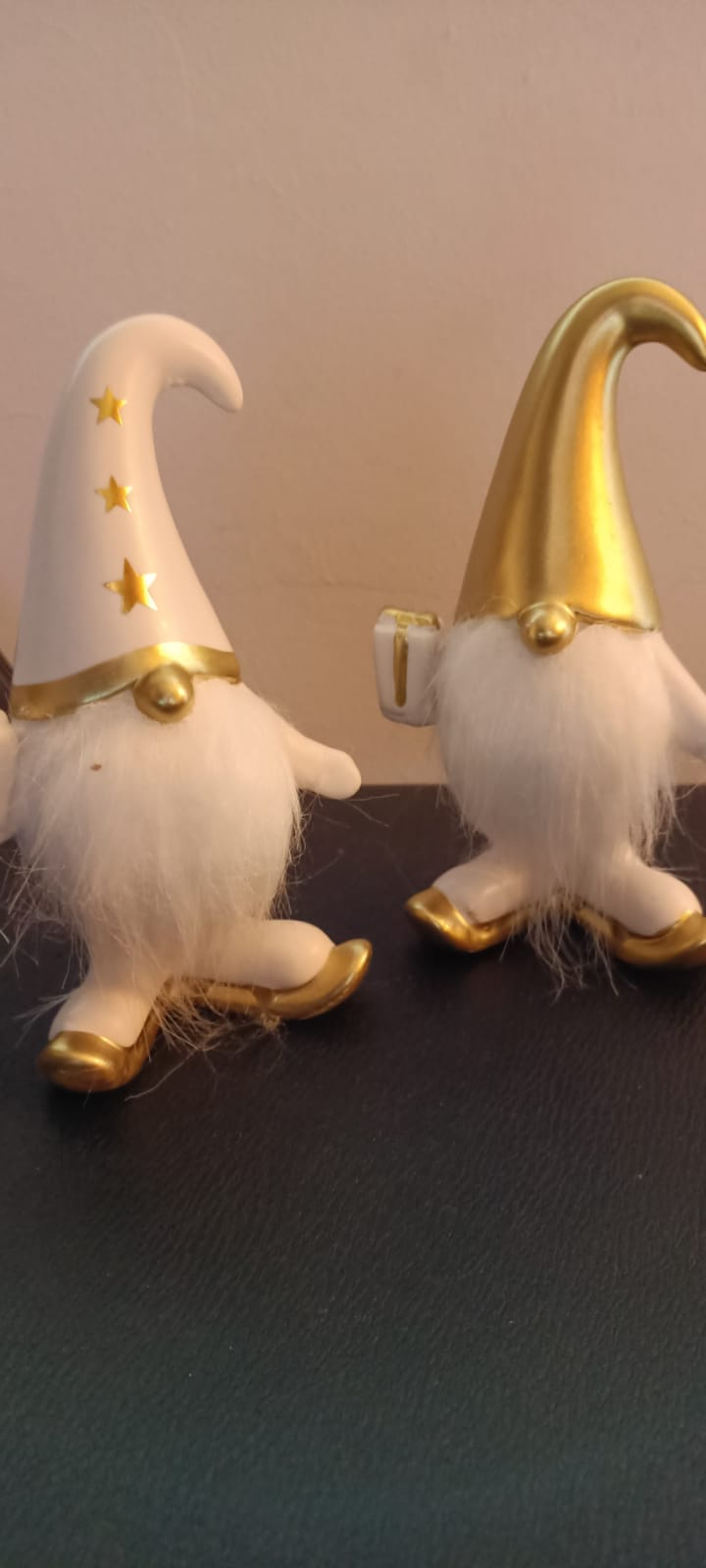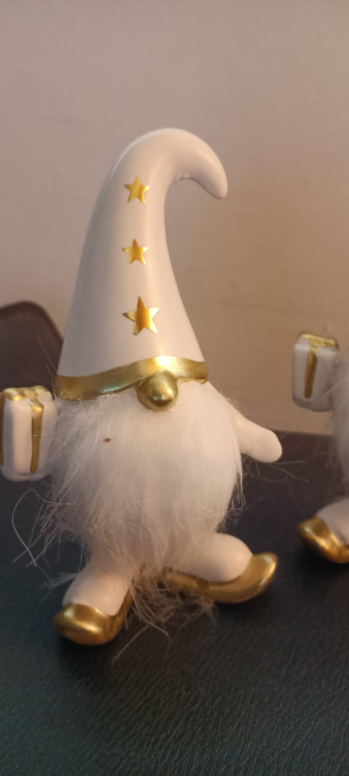 Acesta este un set. Pretul afisat este pentru intregul set. Set 2 Moși Crăciun din portelan, alb și auriu, cu detalii elegante, perfecti pentru decorul festiv al sărbătorilor de iarnă. Un cadou rafinat și deosebit!
