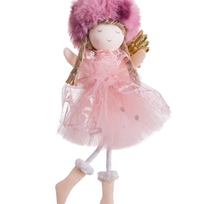 IXIA Set 6 pandantive decorative fata din tesatura roz 4x3x17 cm