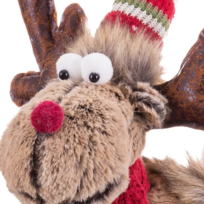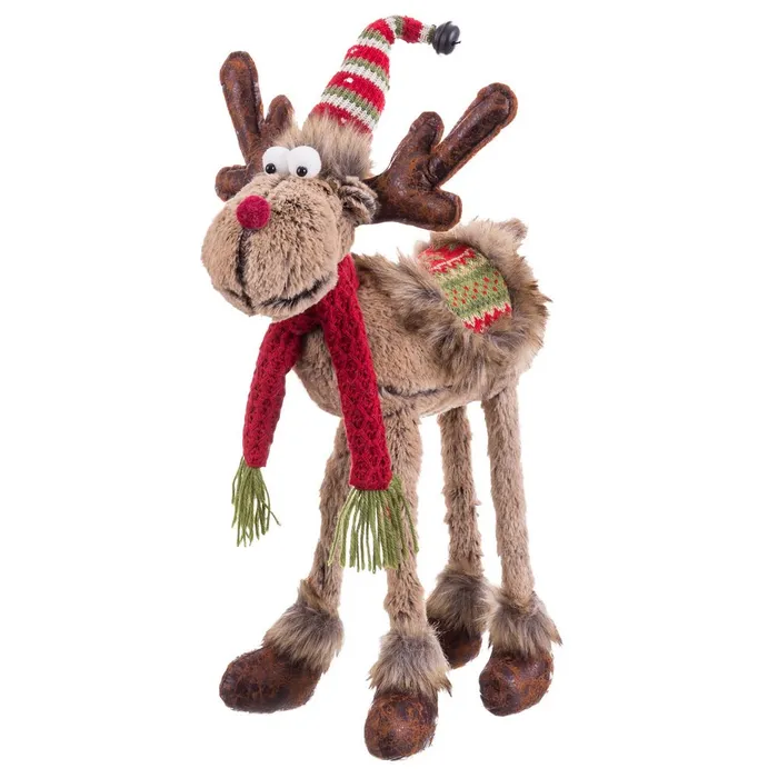 Acest ren cu 4 picioare din poliester este perfect pentru a adăuga un element festiv și amuzant decorului tău de Crăciun. Cu dimensiunile de 22 X 14 X 54 CM, devine un punct de atracție ideal pentru decorul interior, fiind potrivit atât pentru a fi așezat pe podea, lângă bradul de Crăciun, cât și pe rafturi sau în vitrine. Detaliile sale atent lucrate, precum eșarfa roșie și căciulița festivă, aduc un plus de căldură și veselie. Compoziția sa din poliester, metal și plastic îl face rezistent și durabil, perfect pentru a fi folosit în fiecare sezon de sărbători. Descoperă acest ren și alte decorațiuni de Crăciun la CreativDeco pentru a transforma casa ta într-un tărâm magic de sărbătoare!