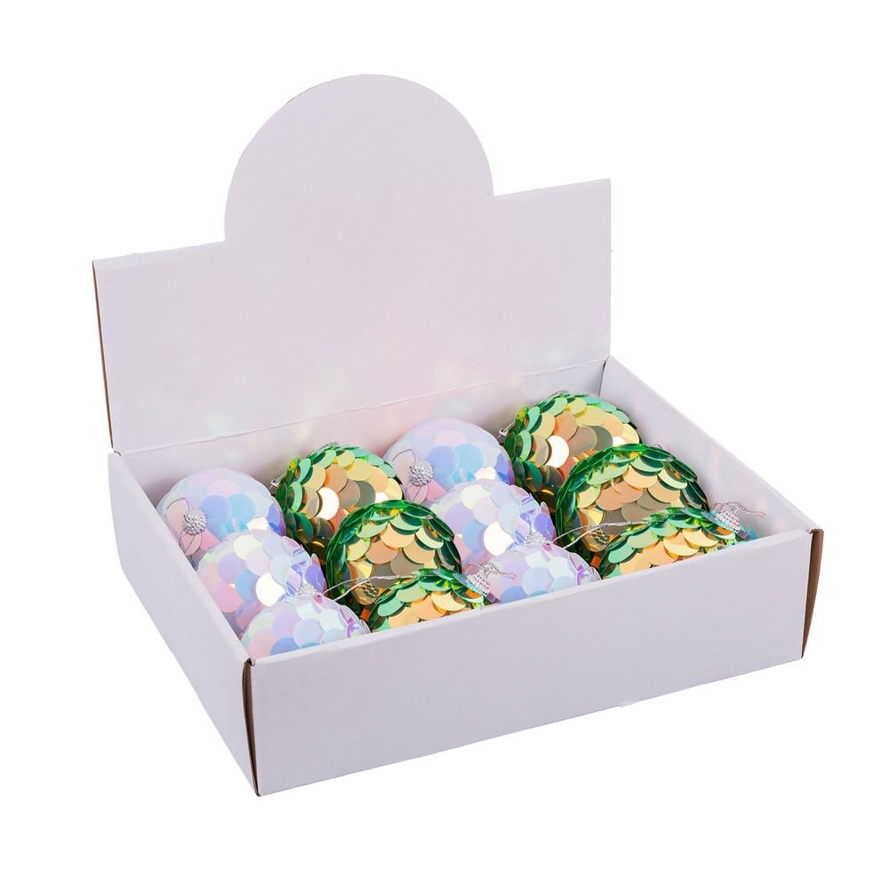 Setul de 12 globuri decorative cu efect de solzi irizați aduce un farmec aparte decorului de Crăciun, prin reflexiile sale spectaculoase și textura tridimensională. Globurile sunt ușoare, durabile și pline de strălucire, fiind alegerea perfectă pentru un brad elegant, luminos și modern.