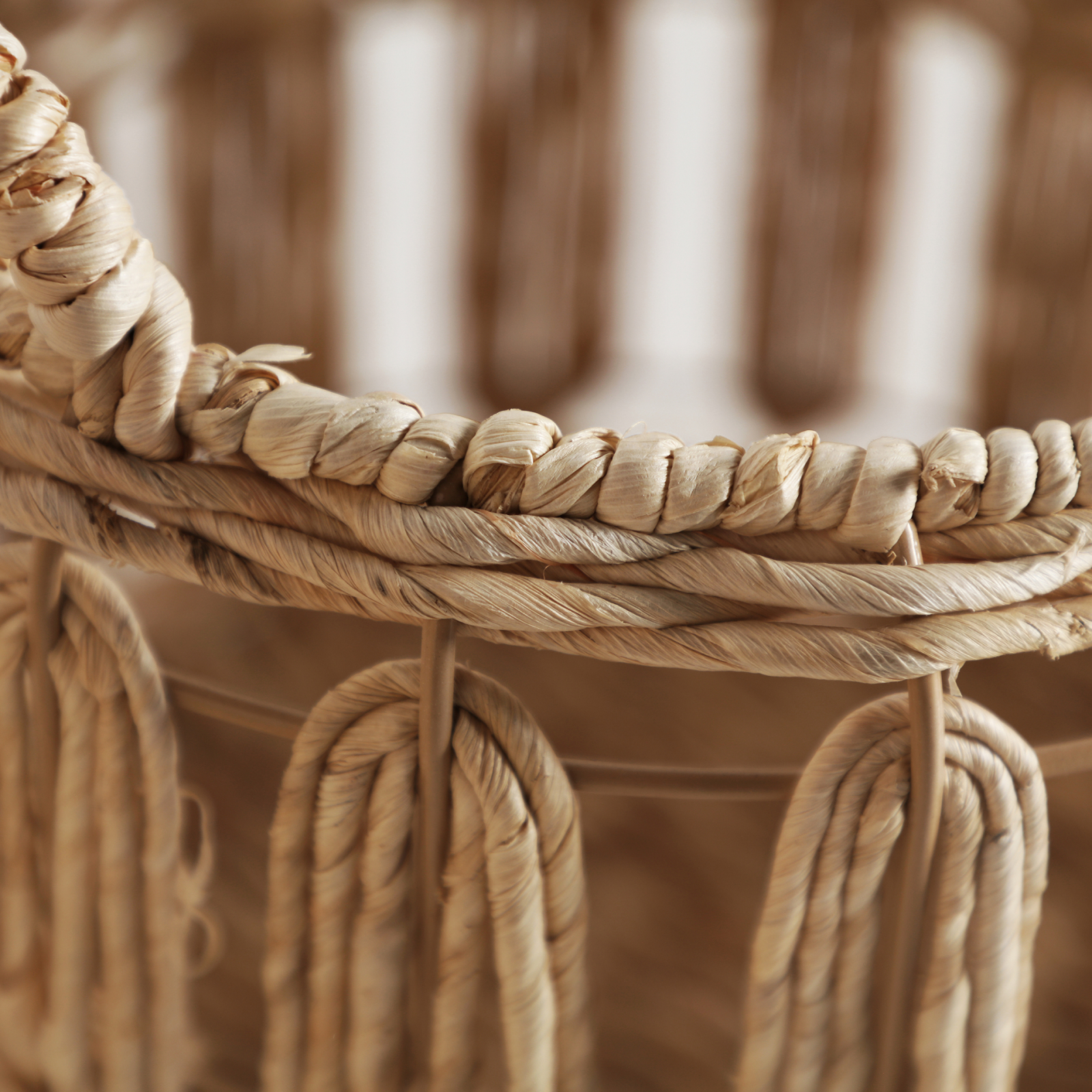 Setul de cosuri Dieky combina fibra naturala maro cu fierul intr-un design Boho practic. Perfecte pentru organizare si depozitare cele doua cosuri au dimensiuni complementare: mare (41x41x47 cm) si mic (30x30x36 cm). Materialele naturale adauga textura si caldura oricarui interior iar designul versatil permite utilizarea lor in diverse spatii. Greutate: 3 kg. Produsul este dezvoltat de designerii spanioli de la KODU Homedesign folosind materiale premium.