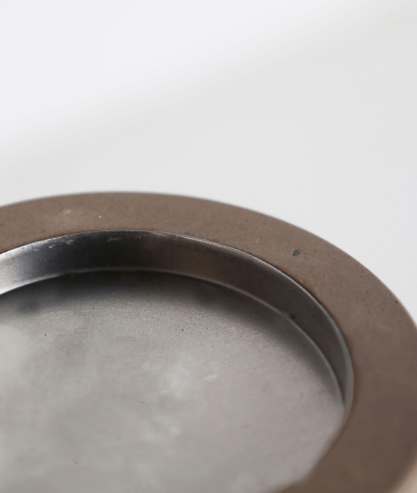 Textura naturală a lemnului și forma rotunjită, realizată manual, conferă un aspect autentic și sofisticat. Metalul din partea superioară adaugă contrast vizual și funcționalitate, fiind ideal pentru lumânări cu diametrul de până la 8 cm.