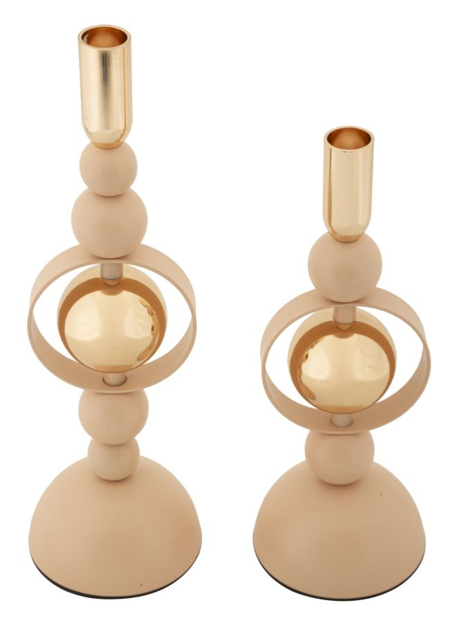 Set 2 sfeșnice din metal roz pudră cu detaliu sferic auriu Saturno 10 x 27–33 cm
