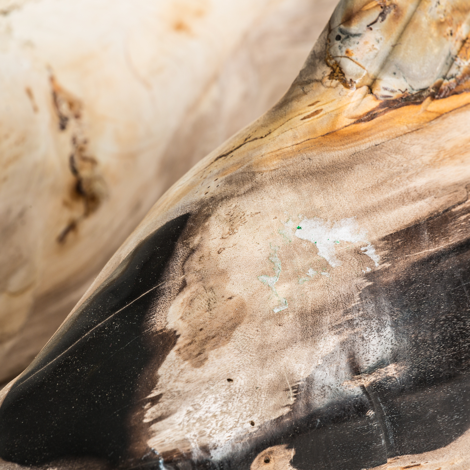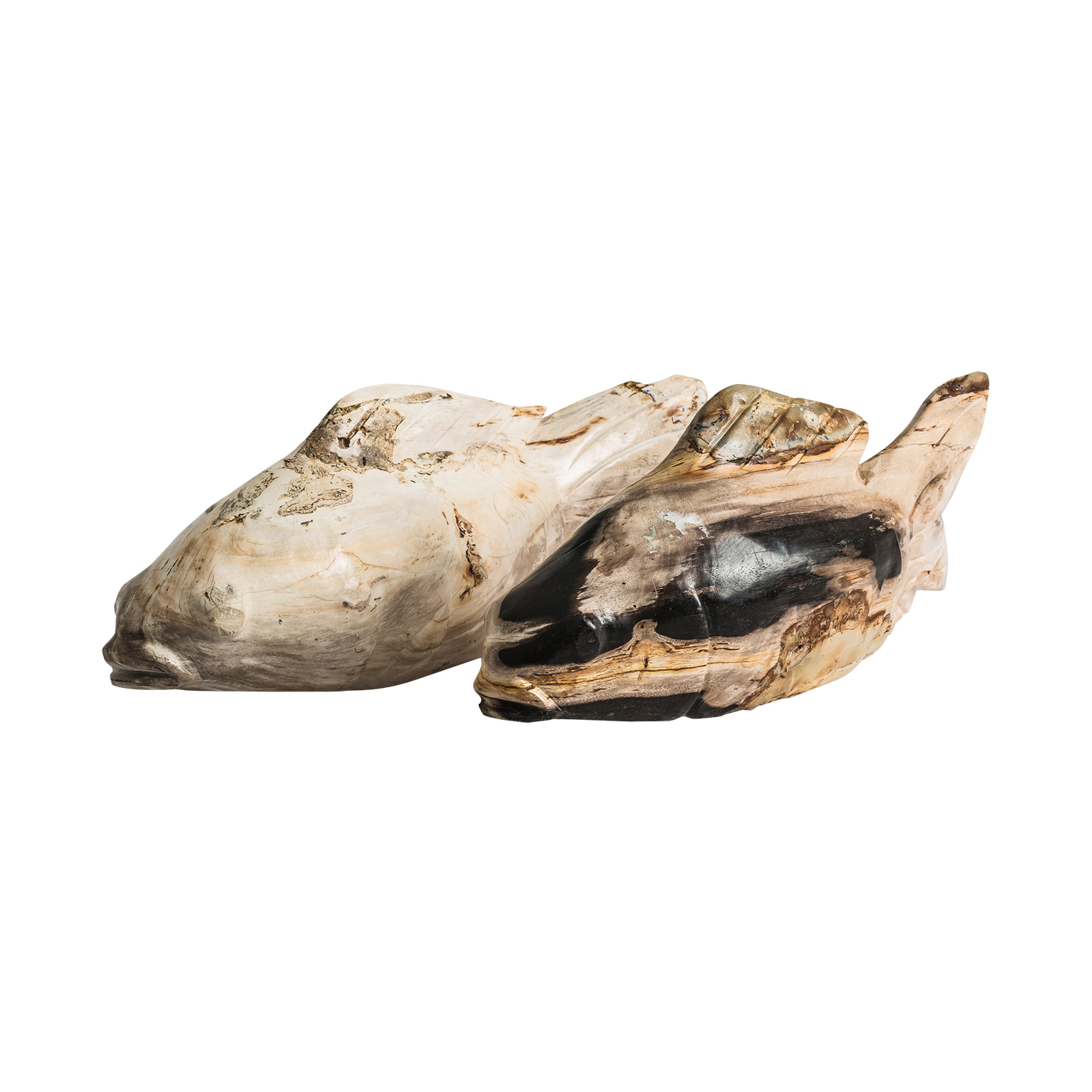 Statueta peste scandinava din lemn pietrificat, cu design organic si elegant. Piesa decorativa pentru interior contemporan.