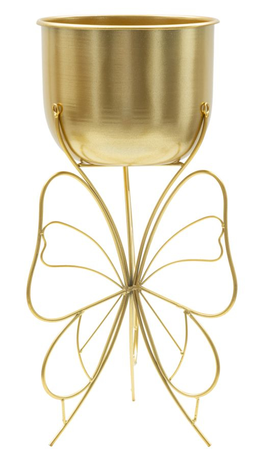 Suport pentru flori auriu decorat cu fluturi, combinând funcționalitatea cu arta. Această piesă deosebită este perfectă pentru un colț dedicat naturii în casă. Produs din colecția de toamnă 2024!