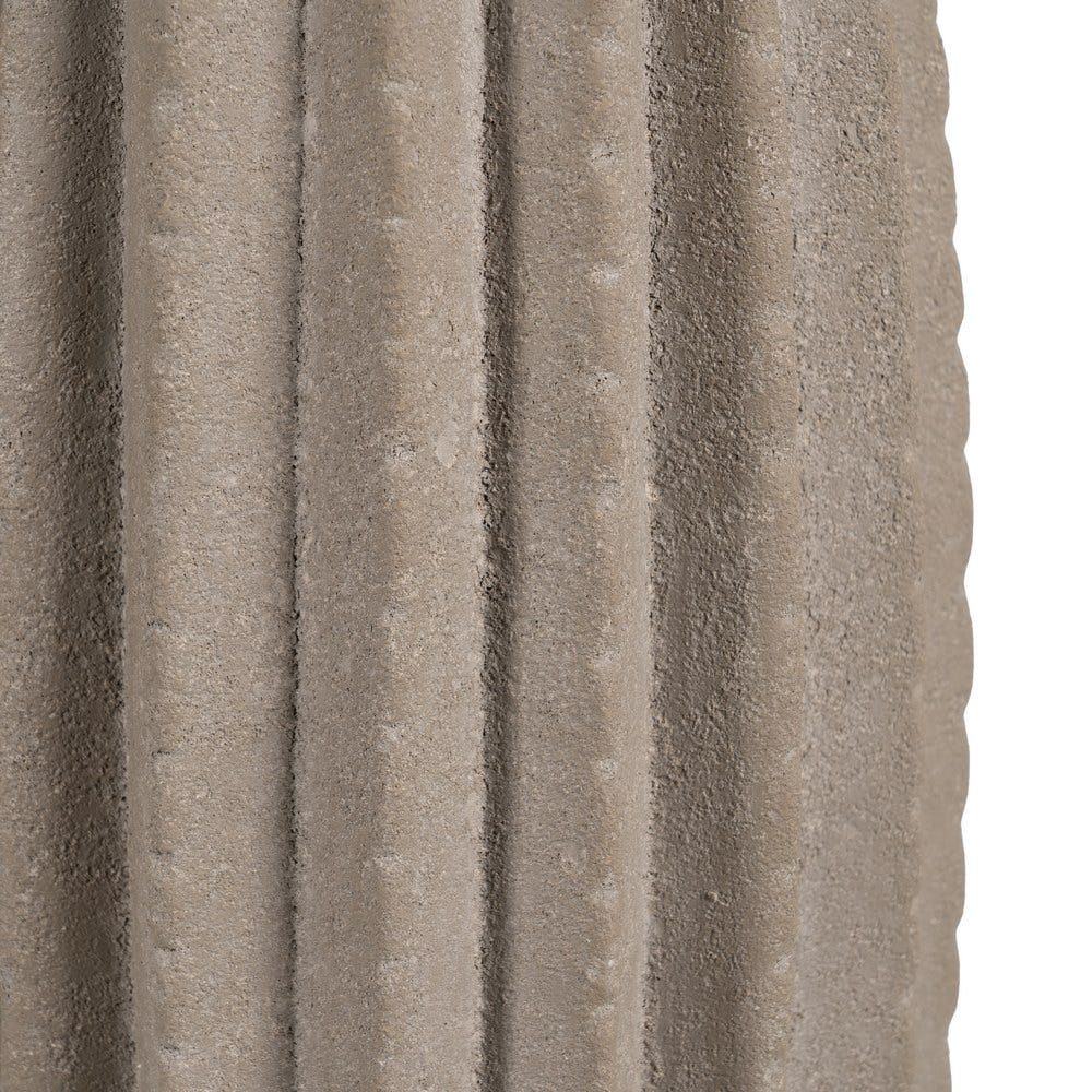 Suprafața este marcată de linii verticale în relief, care oferă textură și pun în valoare forma vazei. Finisajul cu aspect de piatră adaugă profunzime și un aer natural, potrivit pentru decoruri echilibrate și relaxate.