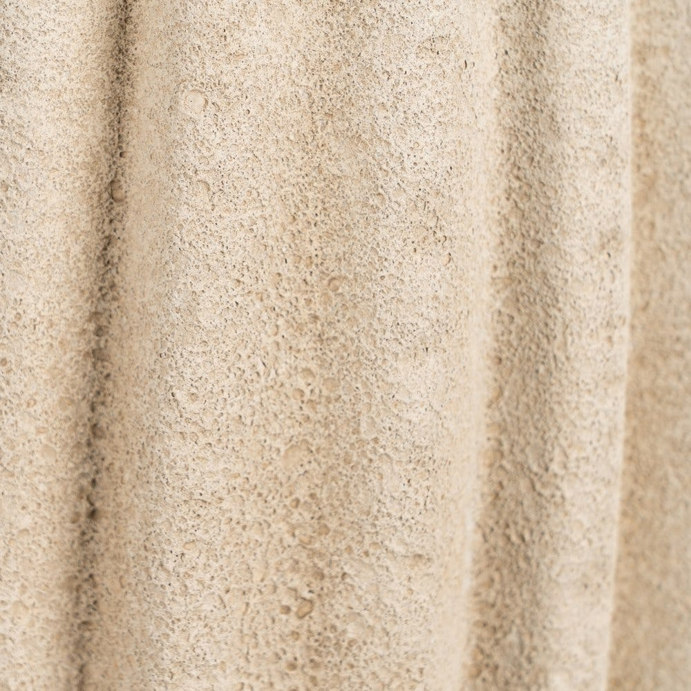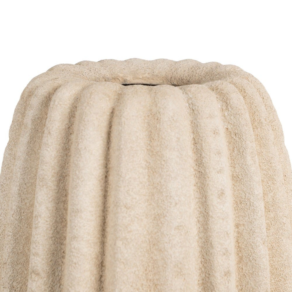 Suprafața este decorată cu linii verticale în relief, care oferă textură și pun în valoare forma vazei. Nuanța de bej este caldă și versatilă și contribuie la crearea unui decor relaxat și armonios.