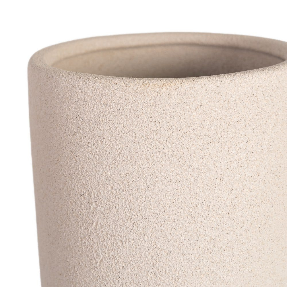 Nuanța crem și suprafața cu textură discretă pun în valoare forma vazei și îi oferă un aspect natural și plăcut. Datorită proporțiilor sale această piesă poate completa frumos o masă decorativă o consolă sau o comodă unde poate aduce un accent subtil în decor.